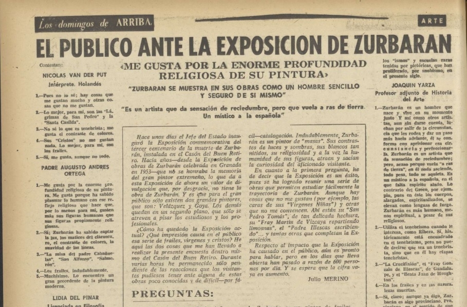 Il recupero della figura storica e della ricca produzione artistica di Francisco de Zurbarán nella Spagna franchista, a cui fu dedicata la mostra tenutasi a Madrid nel 1964 al Casón del Buen Retiro; e il ruolo della storica dell’arte María Luisa Caturla in questo rinnovato interesse per il pittore.